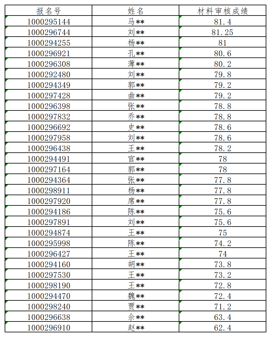 考生进入综合考核阶段的基本要求:材料审核成绩为60.0分(含)以上。